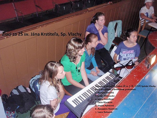 Vysoko oceňujem výbornú spoluprácu SŠ sv. Jána Krstiteľa Spišské Vlachy so Spojenou školou internátnou Spišské Vlachy v rámci projektu Kultúra bez bariér. So žiakmi SŠI, ktorí majú mentálne a kombinované postihnutia sme nacvičili divadelné predstavenie Bolo raz mestečko BOLONEBOLO a talentovaní žiaci SŠ sv. Jána Krstiteľa nám ho pomohli zrealizovať po hudobnej stránke. S divadelným predstavením sme účinkovali pre deti všetkých škôl v meste Spišské Vlachy a pre Špeciálne školy Krompachy, Richnava a Markušovce. Týmto sa chcem poďakovať vedeniu školy za umožnenie realizácie projektu. Ďalej všetkým učiteľom ZUŠ a žiakom, ktorí sa podieľali na tomto projekte hudobnou zložkou. Moje poďakovanie zvlášť patrí pani zástupkyni Jaroslave Forgáčovej za jej ústretovosť, kreativitu a flexibilitu pri našej spolupráci.